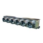 Airzone Easyzone QAI Medium IB8 Mitsubishi Electric 5×200 01M, supplied with a 5-port plenum. Motorized plenum equipped with: five 200 mm motorized dampers, one Airzone central controller, one AZX6QADAPT3MEL5 communication gateway, ionizers—one for each damper—plus an Airzone particulate sensor. Note: thermostats are not supplied.