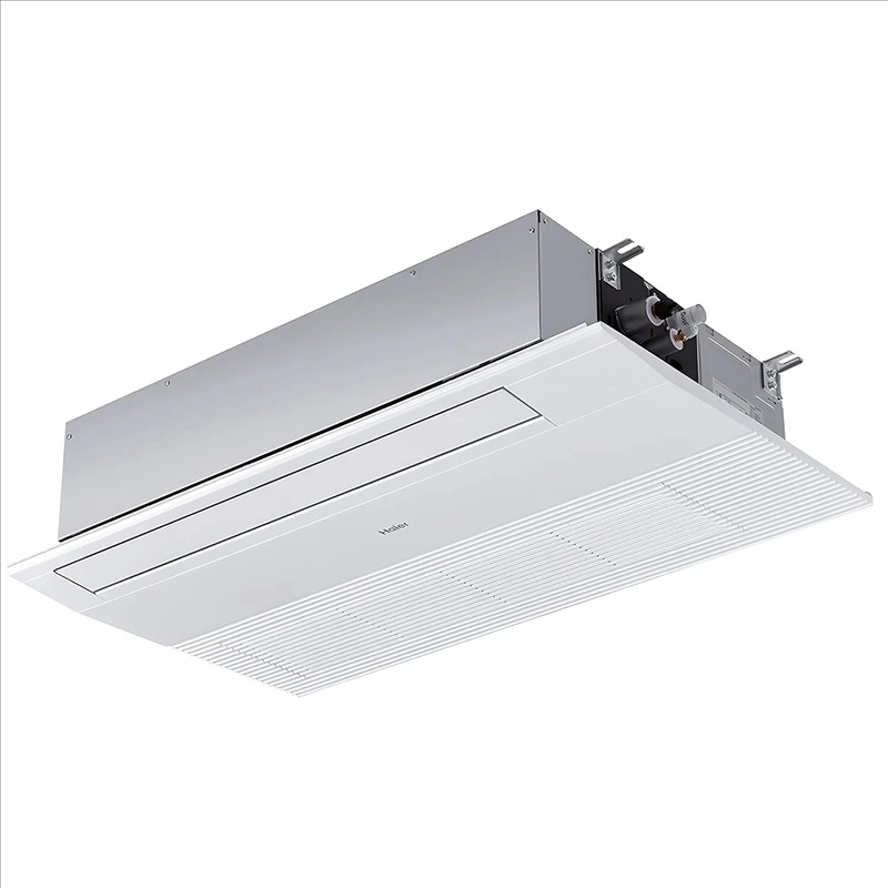 Air-conditioning system Mono-split Indoor unit type Cassette Room (m²) 35 WiFi Built-in Power 5 kW / 18000 BTUs Rated heating capacity 5.5 kW Rated cooling capacity 5 kW Cooling energy class A++ Heating energy class A+ SCOP / Rated heating energy label 4 SEER / Rated cooling energy label 6.1 Refrigerant R32 Refrigerant piping 1/4'' - 1/2'' Color White, Pearl White Voltage Single-phase Min sound pressure dB(A) 41 Panel dimensions (mm) 1348 x 600 x 45 Indoor unit dimensions (mm) 1170 x 540 x 185 Outdoor unit dimensions (mm) 820 x 305 x 643 Airflow rate (m³/h) 550