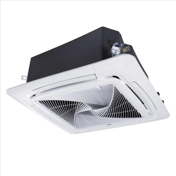 The Round Flow Cassette is a flush-mount air-conditioner that disappears seamlessly into a suspended ceiling. Quiet yet powerful, it suits commercial settings—offices, retail, hotels and restaurants—where discretion matters.