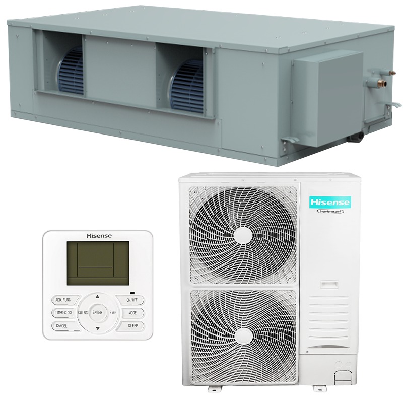 At just 420 mm thin, the slim ducted unit slips effortlessly into tight ceiling voids. External static pressure up to 50 Pa lets it handle duct runs of almost any length.