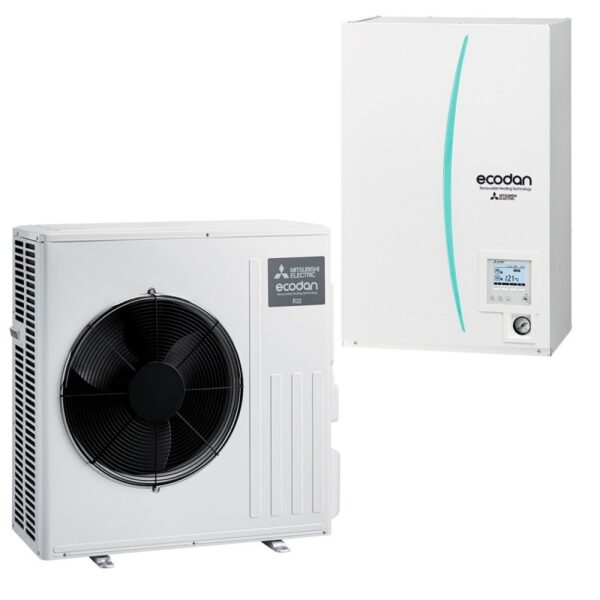Reversible 10 kW Ecodan Eco Inverter bi-bloc air-to-water heat pump, single-phase, with hydraulic module D and 2 kW electric backup