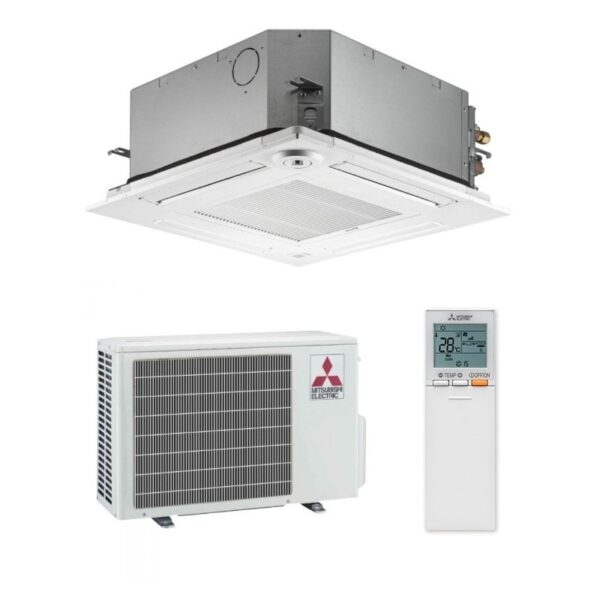 Built for tight commercial spaces, this 60×60 four-way cassette slips neatly into suspended ceilings at a market-low height of 245 mm. It delivers pinpoint airflow control and a horizontal blow mode for peak comfort.