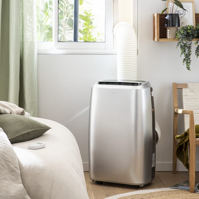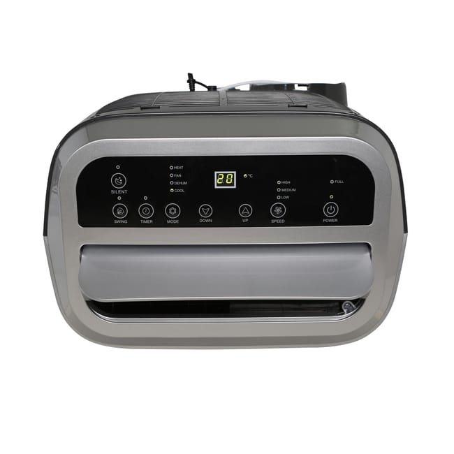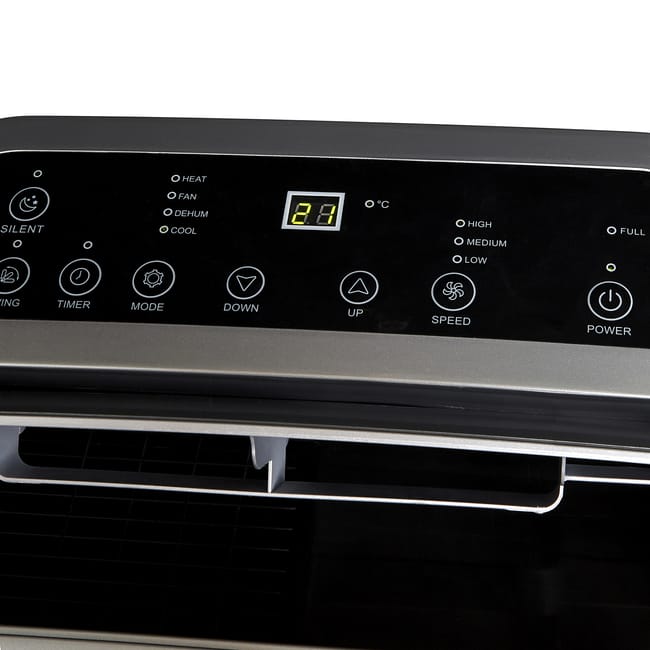 - 4 functions: cool, heat, dehumidify (1.5 L/h), fan