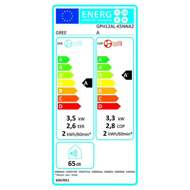 • Capacity: 12000 BTU / 3.5 kW cooling – 3.3 kW heating