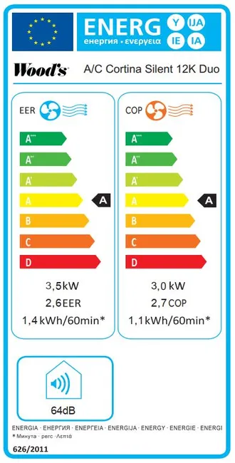Rated Class A for both cooling and heating (SEER 2.6 / SCOP 2.7), the Cortina Silent 12K Duo runs on R290 refrigerant, noted for its minimal environmental impact. At 53 dB it operates quietly, while a dedicated night mode ensures undisturbed comfort.